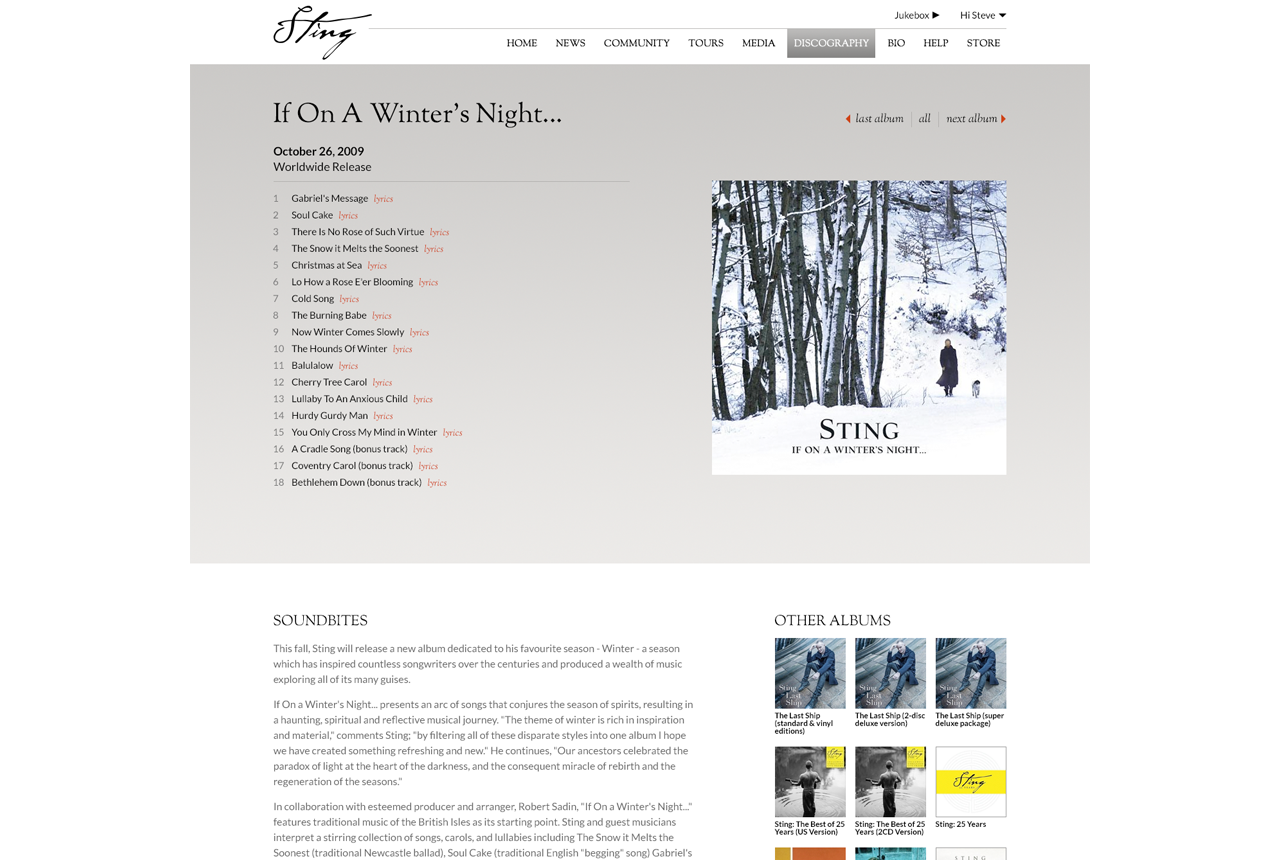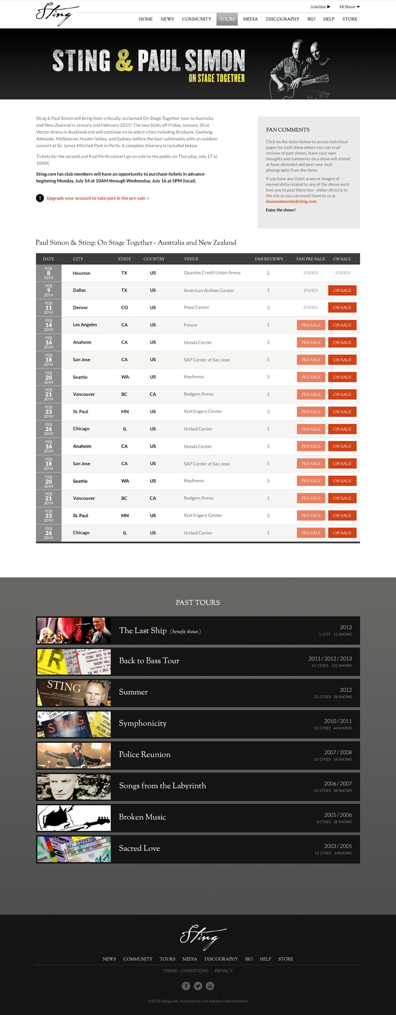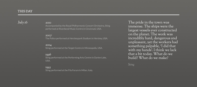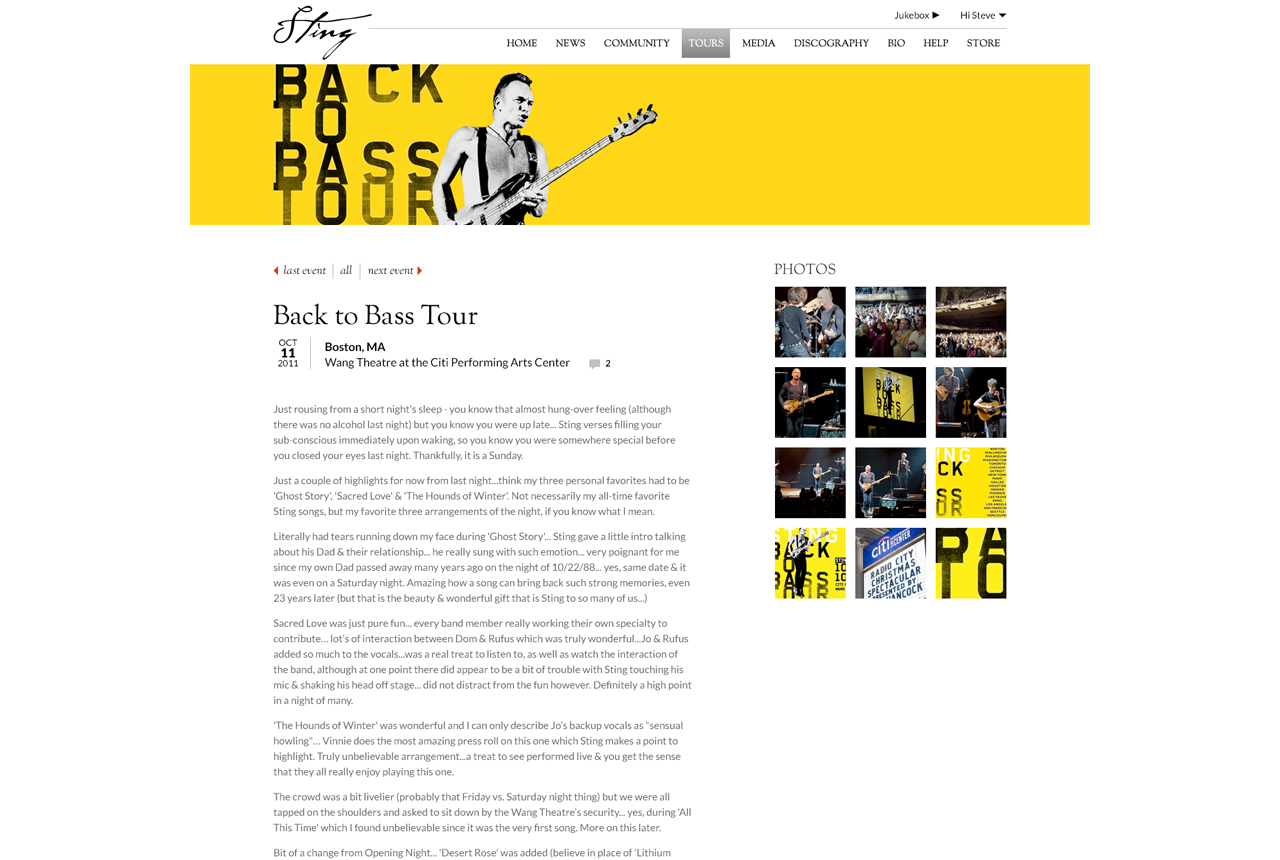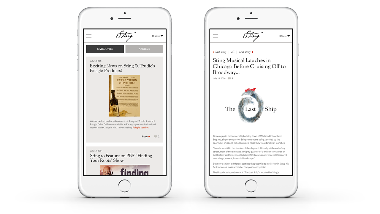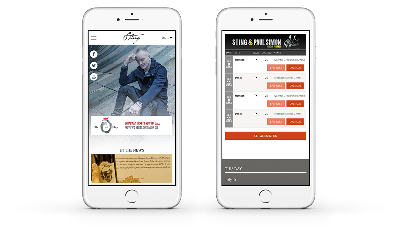 Because Sting uses his music as a platform to do so much more in the world, we focused our redesign of Sting.com on creating a flexible, responsive, and modular site for housing news and event information which allowed site visitors to gain a quick but well-rounded understanding of just what the maverick musician is up at any given moment.