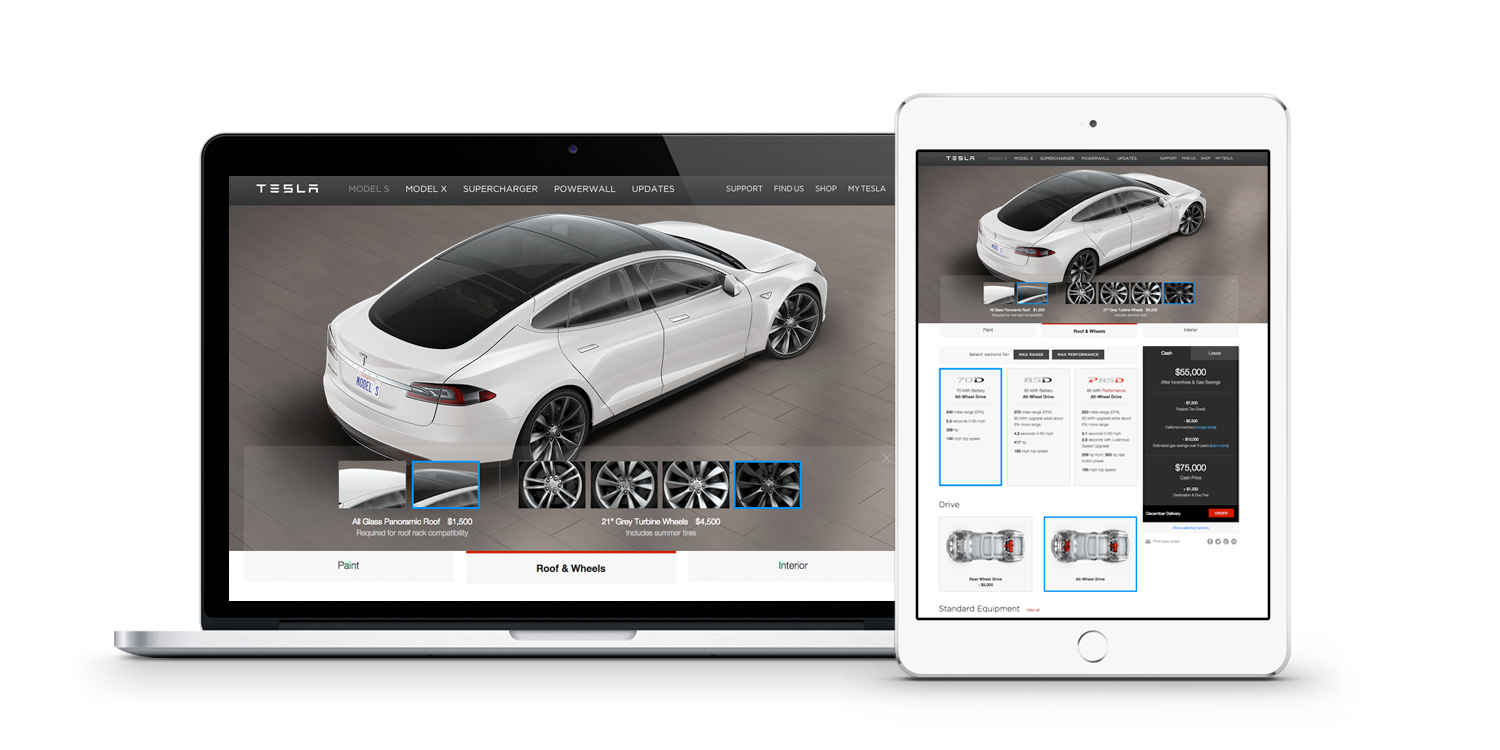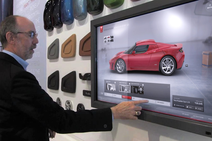 We partnered with Odopod and Tesla 2 years before there were any actual cars to sell with the specific intent of creating comfort and confidence in the new brand and offering. The decision to place concept showrooms and dealerships in highly-trafficked high-end shopping malls was intended to make Tesla a household name and to build the familiarity—and excitement—required to overcome those known marketing challenges. Working closely with the retail architecture team, we designed the user interfaces that still appear on their in-store product information and customization touch screens today.